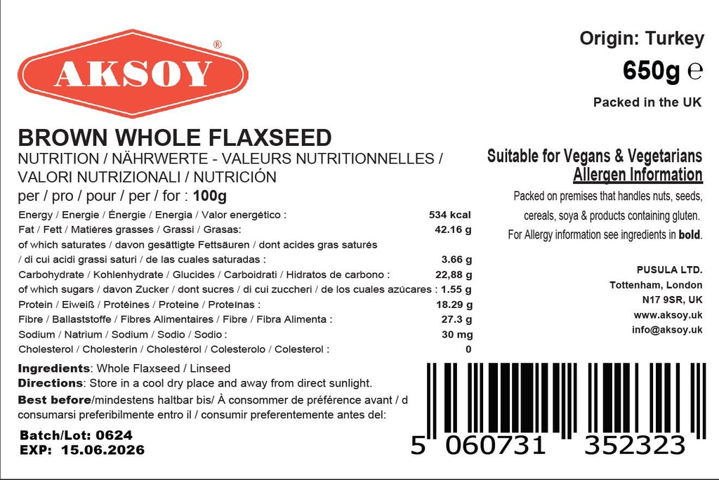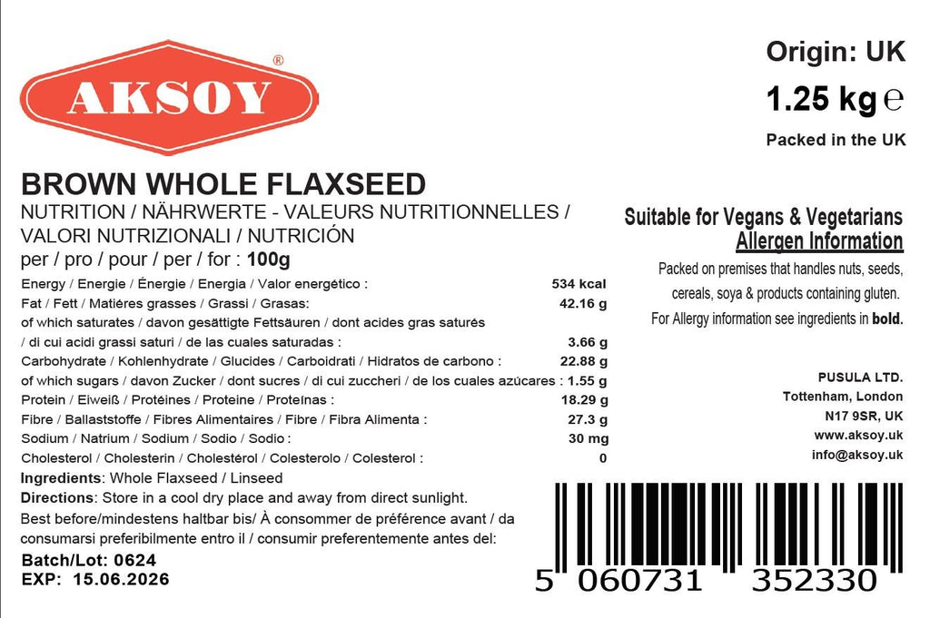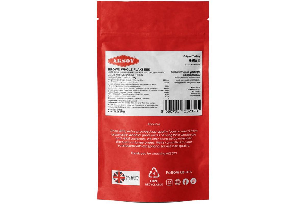 Aksoy Brown Whole Flaxseed Premium Quality, Batch Tested for Purity, 100% Raw, Non-GMO, Sproutable Superfood Perfect for Keto and Low-Carb Diets