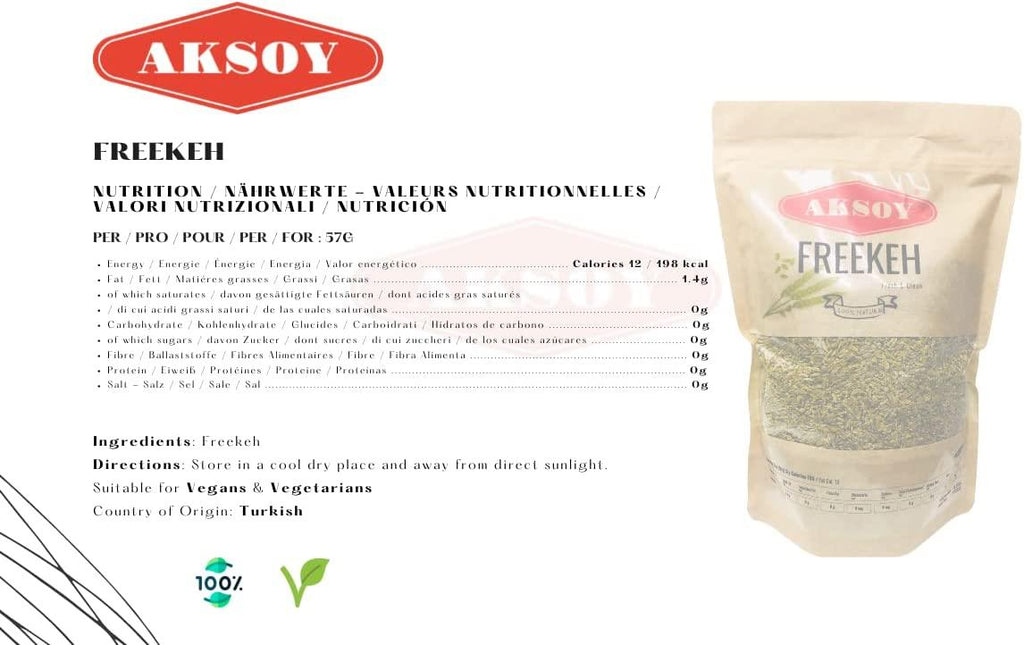 Aksoy Freekeh - Green Cracked Wheat Nutritious and Natural Grain Option with High Fiber Content, Perfect for Soups, Pilafs, and Salads – A Delicious and Wholesome Choice