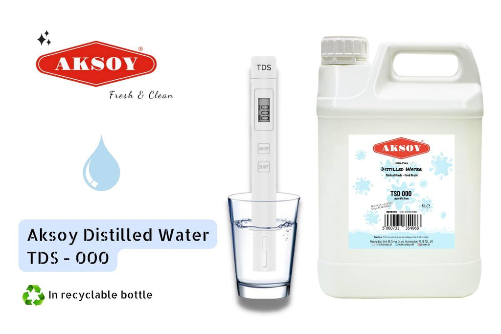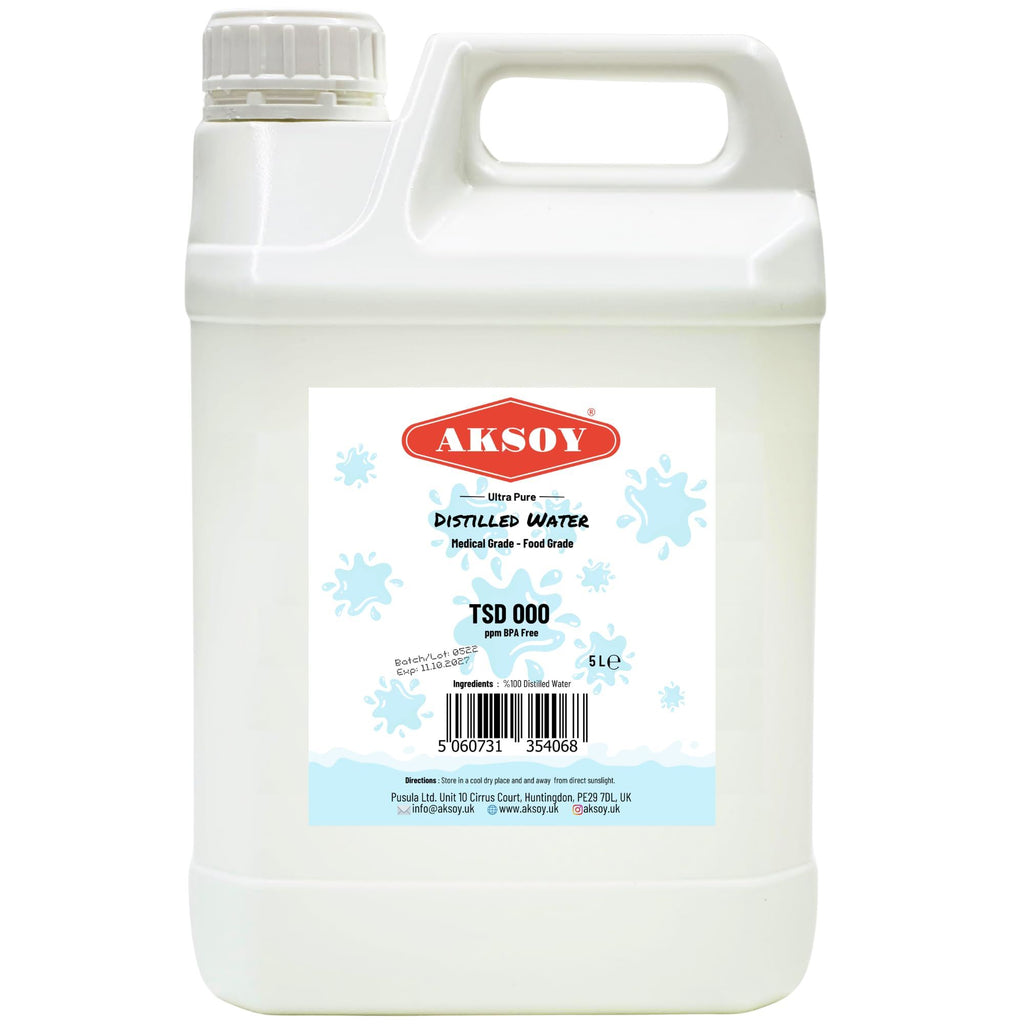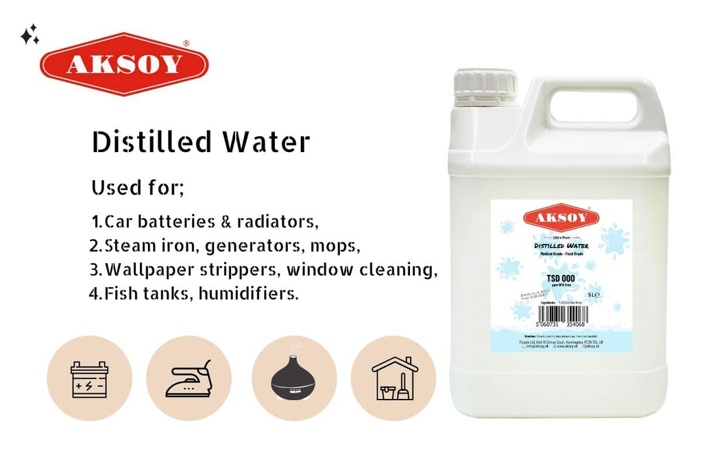 Aksoy Distilled Water 100% Ultra Pure Water 1.5L to 5L- Deionized & Demineralized - TDS 000 ppm Guaranteed - For Batteries, Irons, Lab Use, Aquariums, Humidifiers & Automotive