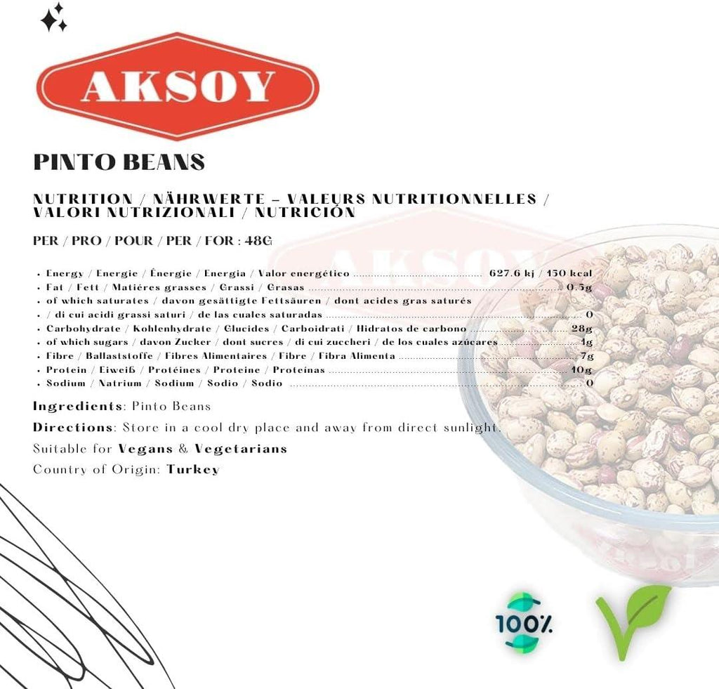 Aksoy Dried Pinto Beans Rich in Protein & Fiber, Perfect for Soups, Stews, Burritos & Mexican Recipes, Premium Quality, Vegan & Natural